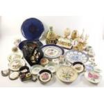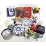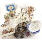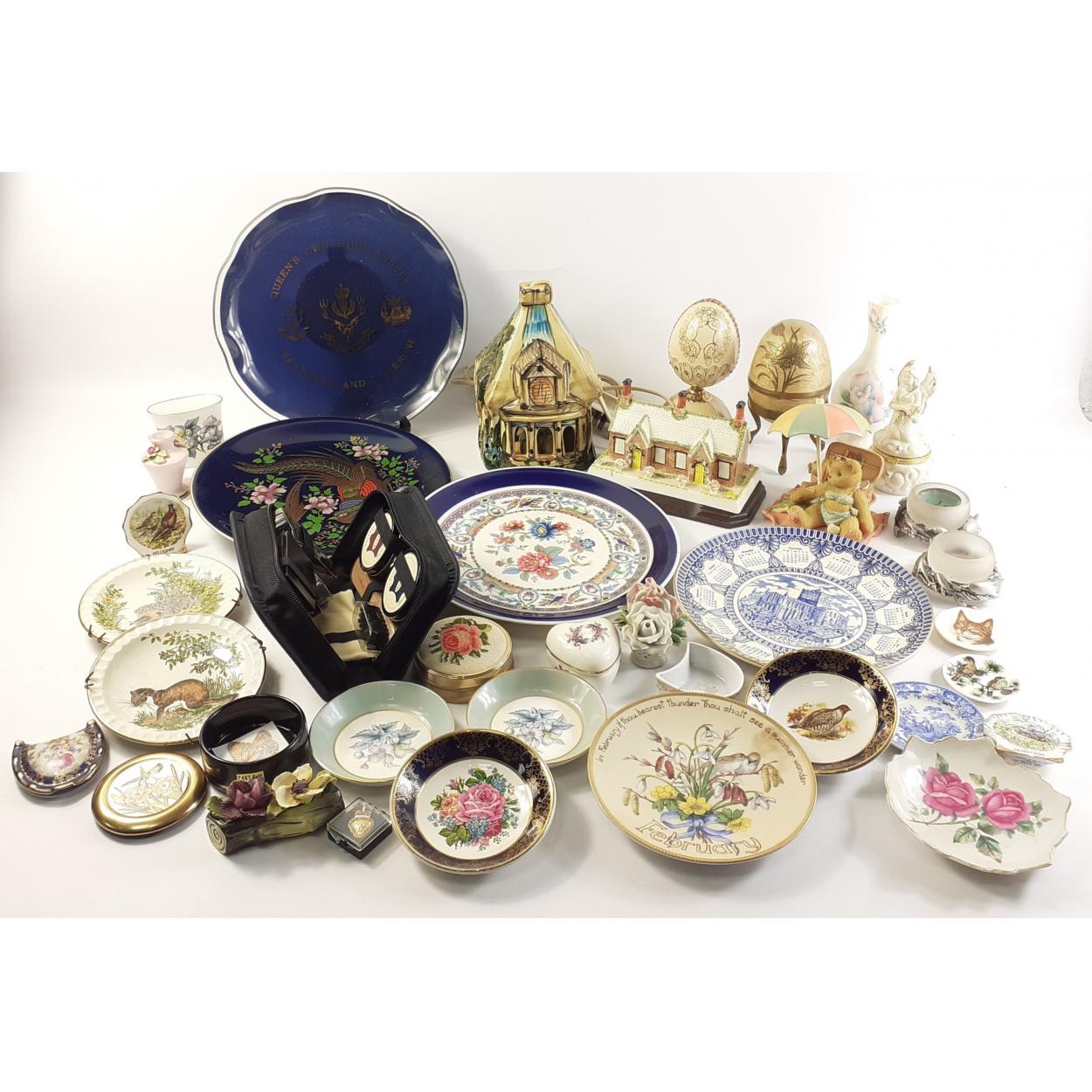 A mixed lot to include collector's plates, Faberge style musical egg, Chokin dish, cottage lamp, shoe care kit plus others
