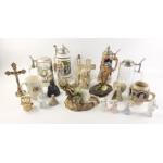A small decorative lot to include 4 bier steins, small ornaments to include a Buddha, glass angel bells
