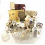A mixed box to include a part dinner set comprising 6 side plates, 6 twin handled soup bowls and saucers, sauceboat and underplate, sandwich plate, 1 bowl plus various glasses, coasters etc