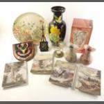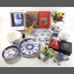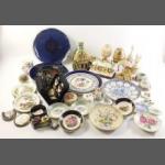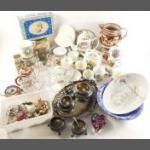 A mixed lot to include collector's plates, Faberge style musical egg, Chokin dish, cottage lamp, shoe care kit plus others