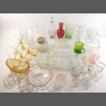 A mixed box of interesting and useful glassware to include, biscuit barrel with lid, kitchenware and useful glasses
