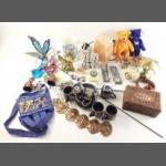 A mixed lot to include a cool bag, security chains, hand-held tools, a wind-up radio, candles, cups collectable decorative spoons, Hummel clock, and others