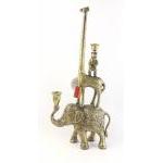 A wonderful ornamental metal Indian artisan candle holder of an elephant carrying a giraffe carrying a bear. Stands approx 57cm high. Very eye-catching