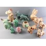 A small ceramic collection to include a SYLVAC terrier (1379) 20cm tall, a spaniel, a Scottie dog (78504), a SYLVAC pot (3168) of a kitten playing with a ball of wool, (8cm), a SYLVAC standing terrier (14cm high), a pair of fawns planter 18cm long and 17cm tall, plus others