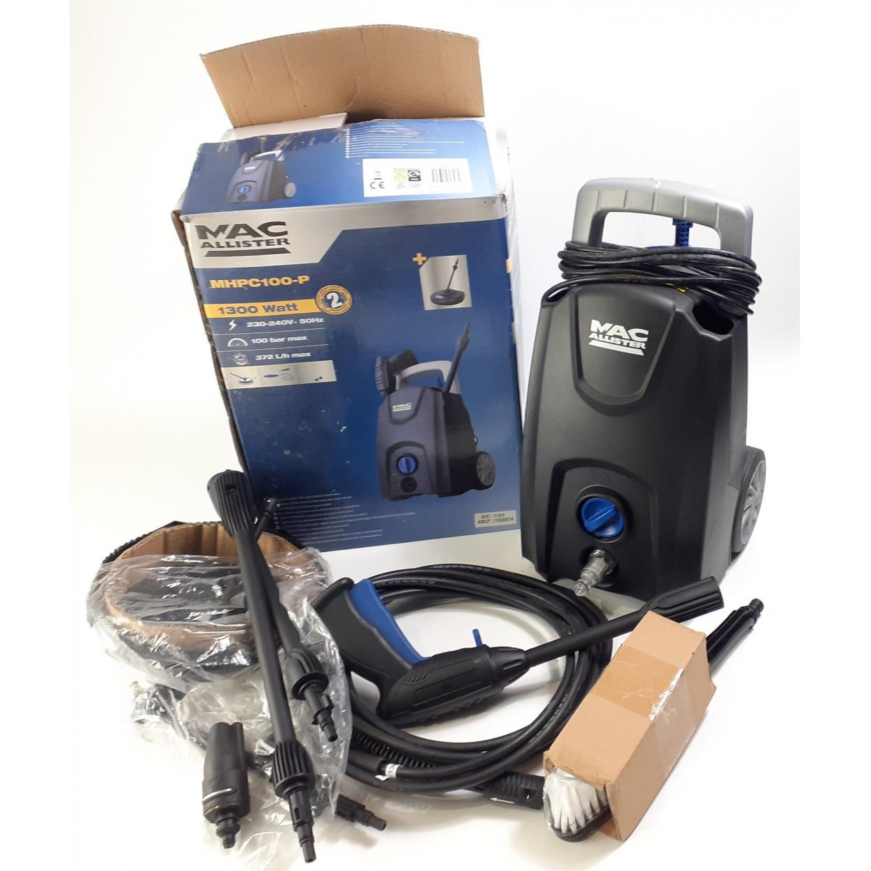 A MacAllister 1300 watt pressure washer still boxed with attachments