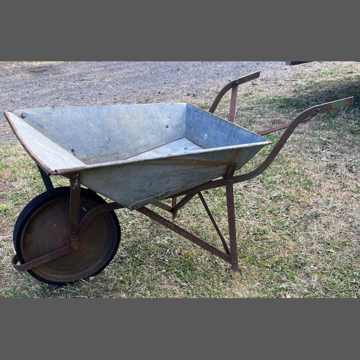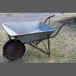 A large VINTAGE handmade wooden construction TRADITIONAL wheelbarrow - length 6ft x 2ft width approx