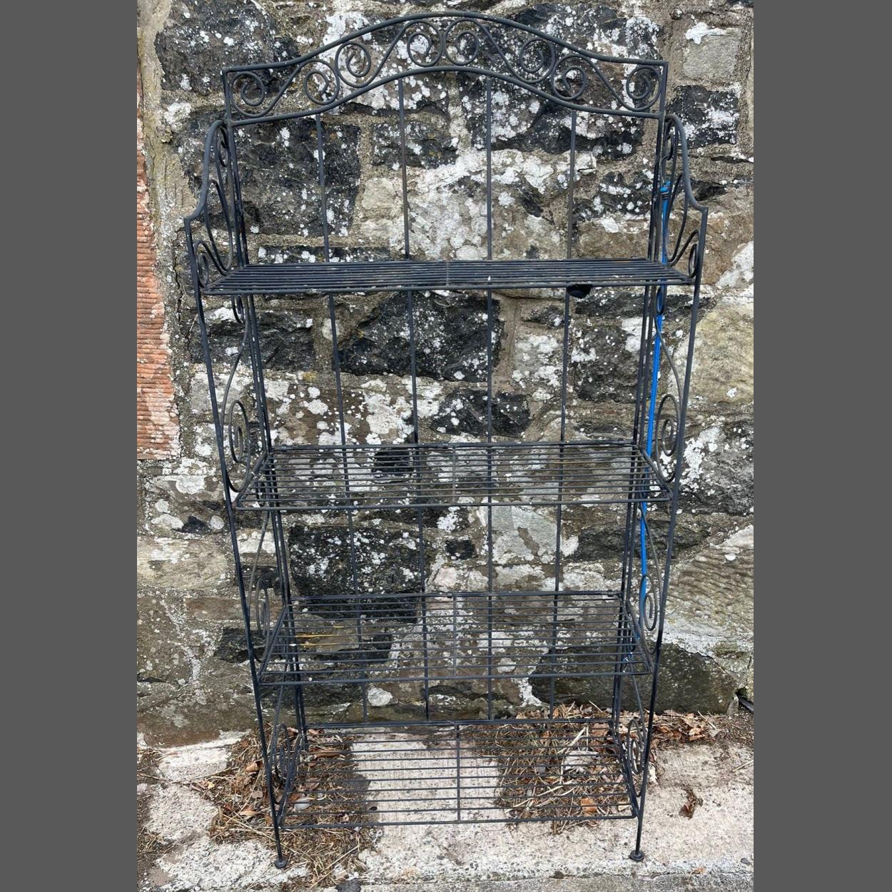 HANDY! A garden or shed or porch storage tidy or plant-stand wirework stand with 4 shelves - height 144cm x 70cm wide approx