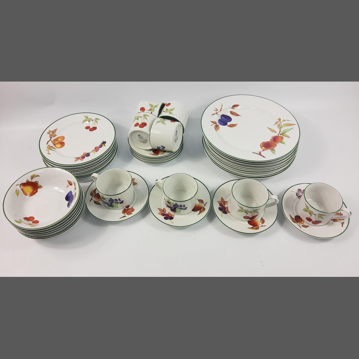 A near complete ROYAL WORCESTER Evesham Vale tea/dinner service comprising, 8 cups, 8 saucers, 7 bowls (16cm), 8 plates (20cm), 8 plates (27cm), no chips, cracks or noticeable damage