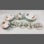 A QUALITY dinner service by HADLEIGH to include 12 plates (19cm dia one plate chipped ), 12 dinner plates (26cm dia) 12 bowls (16cm dia two bowls chipped ), 12 tea cups and saucers and one lidded tureen (20cm dia)