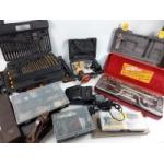 A collection of handyman tools and hand tools, to include: MacAllister MAG600 Angle Grinder, Draper cordless screwdriver set, JCB screwdriver set, AA 24-piece socket set, large cased drill bit set and boxes of fittings and fastenings as well as older Stanley hand drill and plane. All used but in good order.