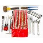 A quantity of hand tools to include adjustable wrenches, a mallet, a masonry drills extension set all in a handy carry-bag