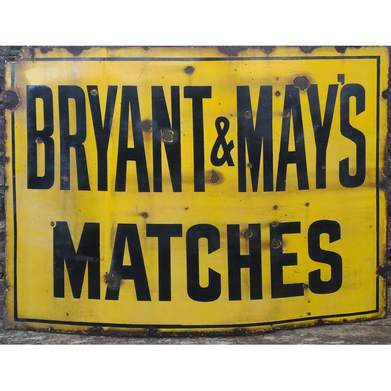 PEEBLES RAILWAY HISTORY! From Stobo Station House. A large BRYANT & MAY MATCHES enamel sign 120cm x 90cm approx. With wear as expected from this historical piece. Makers name to bottom centre 26 Cannon Street London EC. Patent Enamel Co. Ltd