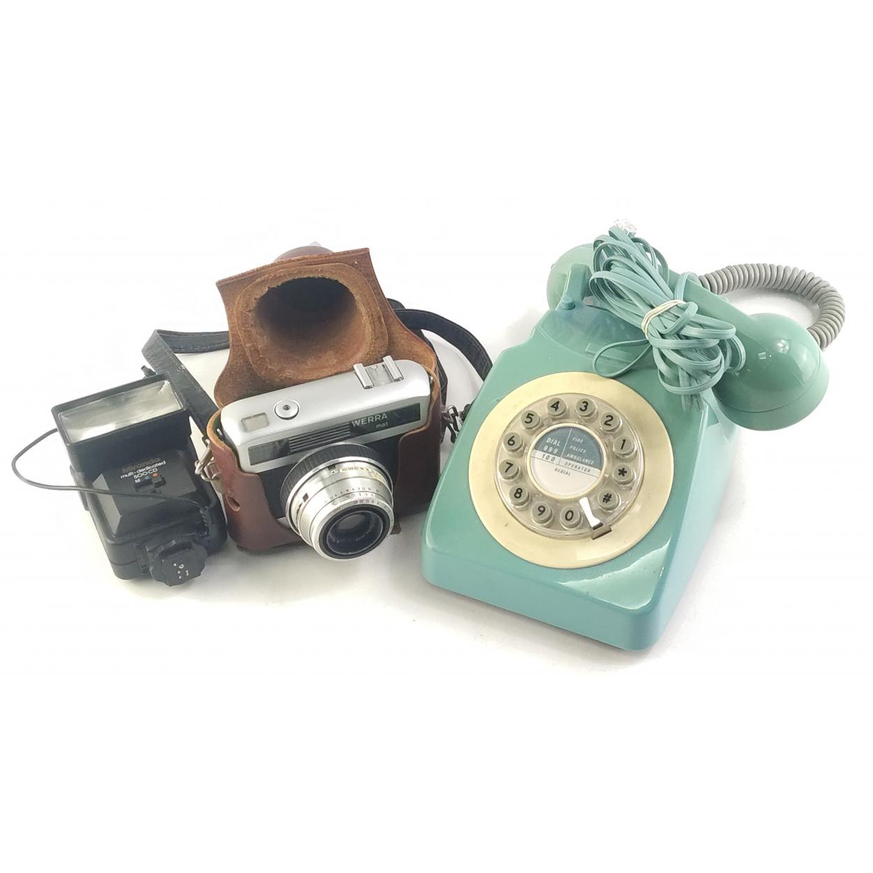 BT Rotary style phone 746 Phone with push buttons. Also a vintage camera