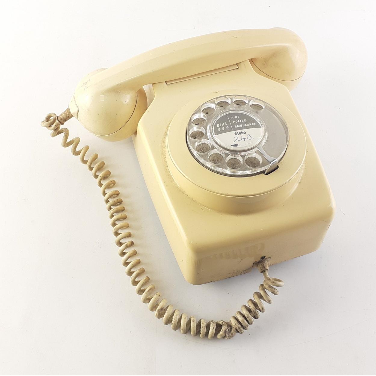 Vintage BT Rotary wall phone in cream. Needs a clean but a good solid complete piece.