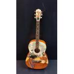RECORDING KING acoustic guitar with Cowboy Western scene to body. Overall good condition, minor chip to edge noted.
