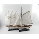 Two impressive model sailing boats on stands one with three masts stands approx 50cm tall, the other, single-masted, is approx 59cm tall