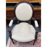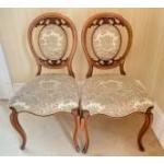 PURCHASED FROM GEORGIAN ANTIQUES IN EDINBURGH - A pair of VICTORIAN light ash wood formal chairs- with fabric seat covers and back pad, with beautiful carved wood design on the back of each chair - dimension 88cm height from floor to the top of the chair