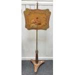 NICE QUALITY! A GEORGIAN pole fire screen in mahogany with hand painted adjustable screen - dimension 5ft height