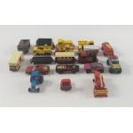 A small collection of mainly MATCHBOX die-cast toy vehicles in PLAYWORN CONDITION(no boxes) to include a Lesney Rover 3500(1980), a Lesney Combine Harvester 1977, a Matchbox Pontiac 1977, A Lesney freeway gas tanker No 63, a 1975 Lesney Blaze Buster, a Matchbox open back truck, Lesney Products 1970 Beach Buggy, Matchbox Lesney tractor with shovel, Matchbox No 24 Shunter train with flat car, a Matchbox Lesney 1978 Ford Tractor, a Lesney Steam Loco 1978, Matchbox Lesney No 40 Horsebox etc
