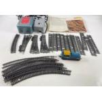 A quantity of used model railway track to include 8 long curved pieces, 3 short curved pieces, 11 short straight pieces, 3 track junction pieces, plus a British Rail diesel engine (D2785), plus a SMOOTHFLOW power unit by Minimodels ltd and an RP.53 power controller and a vintage Tri-ang Hornby Train Set catalogue