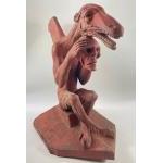FABULOUS AND RARE IN DESIGN!! A large VICTORIAN terracotta roof ridge tile GARGOYLE FINIAL clutching a human skull, stands 50cm tall, base has been repaired and is 40cm long
