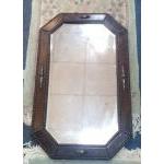 A SUBSTANTIAL EDWARDIAN beaded oak framed wall mirror with eight sides - dimensions length 80cm x width 53cm approx