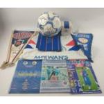 RANGERS FOOTBALL CLUB memorabilia consisting of a signed football from 2002-3 won at auction at a hospitality event at Ibrox, a 2000 whisky tumbler, penant from 1976, a signed programme from Rangers v Airdrie 1993, programme from Rangers v Paok Salonika 1998, programme from Rangers v Anorthosis Famagusta 1995, Rangers scarf celebrating honours up to and including 1964, a size 46" home kit short-sleeved shirt from 1990-92,