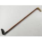 A VINTAGE quality 70cm long wooden riding crop with horn handle