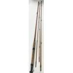 Three well-loved rods to include a 2 piece rod 6ft long, a 2 piece rod 8ft long, a bagged 4 piece rod approx 12 1/2ft