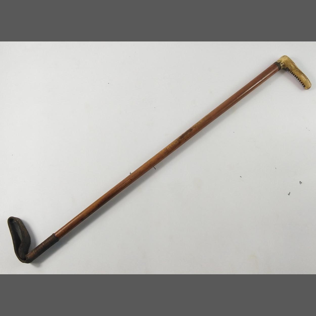 A VINTAGE quality 70cm long wooden riding crop with horn handle