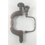 An ARTHUR of EDINBURGH Brass & Wood Brace. Circa early 1800. Brace measures 13 1/2 inches with a 4 inch throw. A nice feel and patina to the beech frame with ebony palm handle and horn inlay. Bit catch will require some renovation - with also a late Georgian/early Victorian hand drill brace dimension 26cm in length