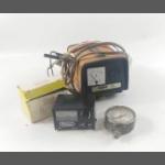 A collection of VINTAGE GAUGES and electric meters to include a PAMA SWR meter model No SWR007 Taiwan still within its original box with original purchase receipt of £8.50 May 1993 8cm x 6cm x 6cm depth, also a WYNALL W4 12 volt charger and a small AEROGRAPH DeVILBLIS pressure gauge meter, glass cracked but still all there 7cm diameter