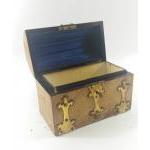 VINTAGE QUALITY! A charming walnut correspondance box in chest form with brass style escutcheon fittings, with lock and key, with an original royal blue fabric lid lining. There is a small brass label W and J Milne 126 Princes Street Edinburgh - dimensions 22cm long x 22cm height x 12cm depth approx