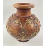 A most unusual CONTINENTAL studio-vase made from wood with bands of brass flowers, stands approx 22cm high