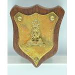 A PIONEER CORPS brass and wooden plaque 12cm long