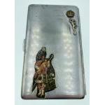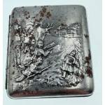 A WWl German metal cigarette case, dated with 1915 in interior with embossed military scene on front of the case - dimensions 9cm x 8cm