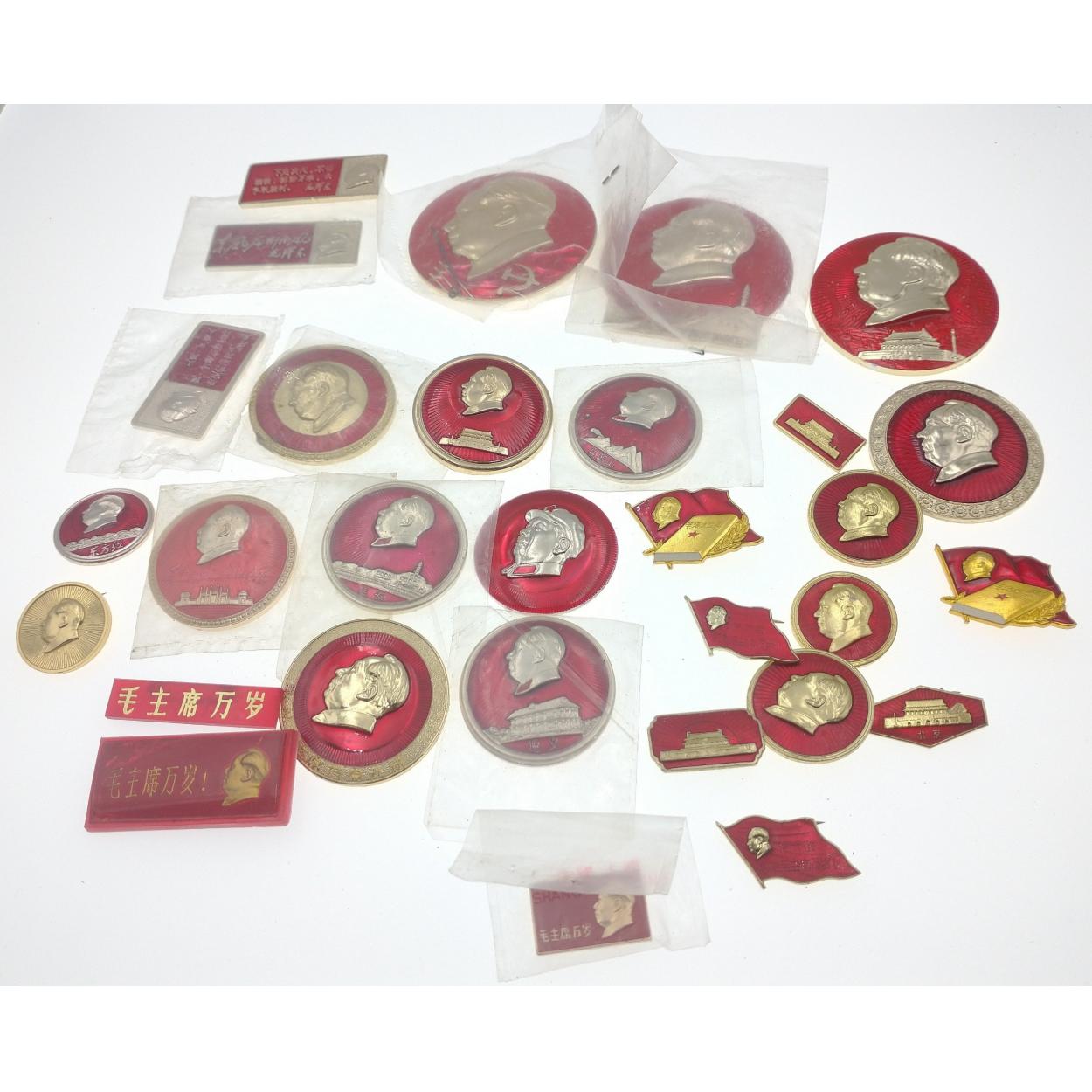 UNUISUAL! Bag containing quantity of Chineese badges mainly of Chairman Mao Communist party