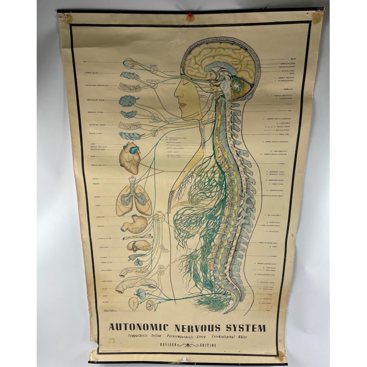 AUTONOMIC NERVOUS SYSTEM c1960's wall chart