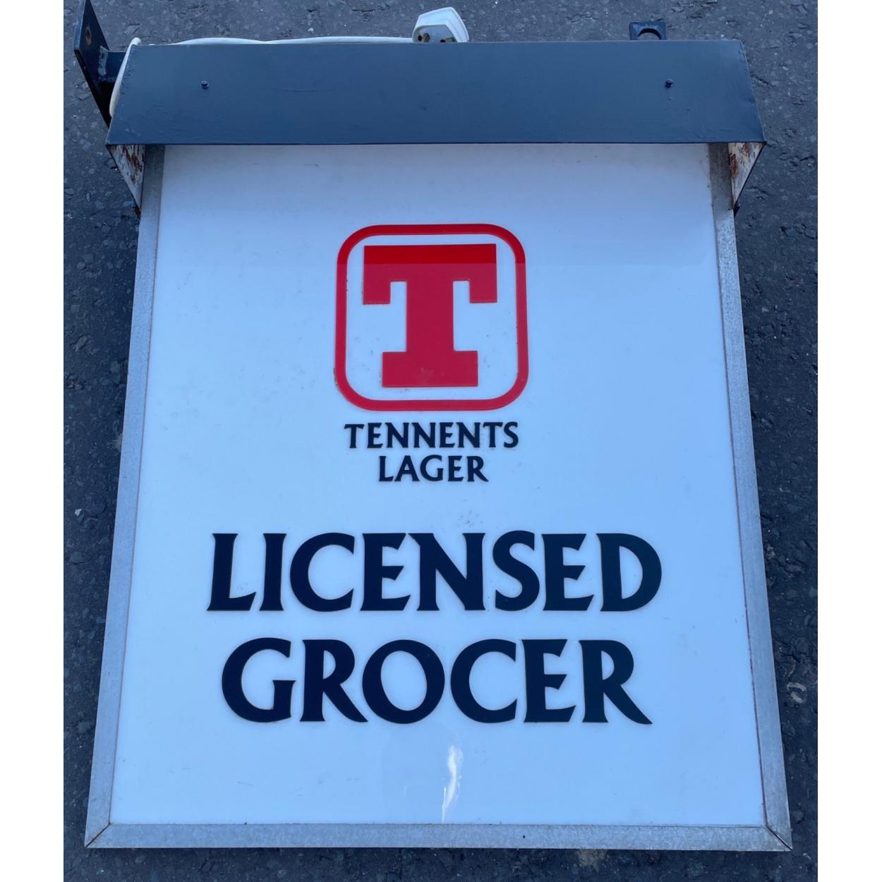 Outdoor illuminating Tennants Licensed grocer sign