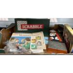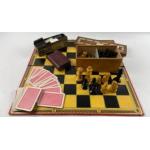 THE GAMES COLLECTION - set of wooden chess men plus board, cribbage board, Waddington's LEXICON card game and dominoes plus a Hitachi radio.