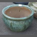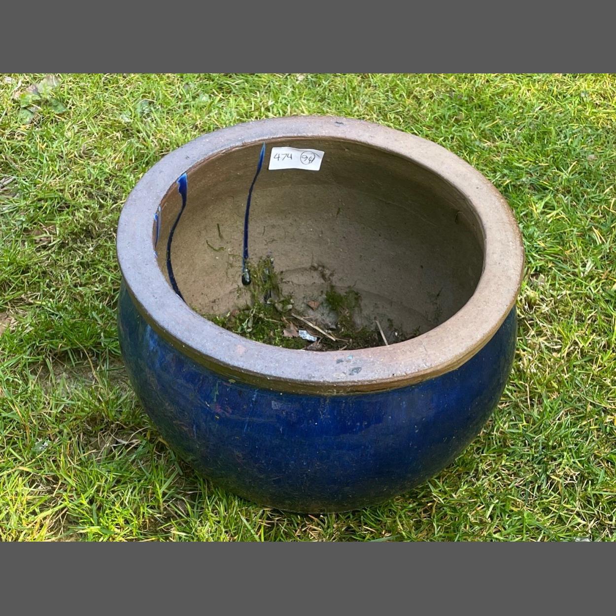 Small blue glazed garden CONTAINER 27diameter height 16cm