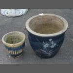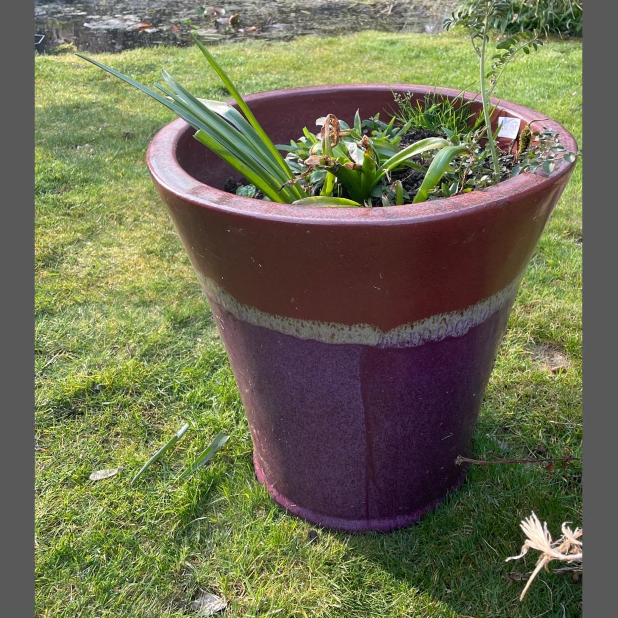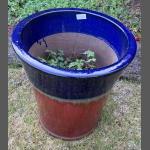 A large GLAZED garden planter with two tone colouring ( with a crack down one side)