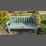 A CEDAR WOOD GARDEN SEAT painted in SAGE green