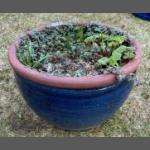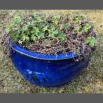 TERRACOTTA blue glazed garden container 35cm x 25cm height with planting