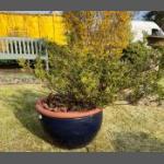 TOP QUALITY!! A pair of GLAZED BLUE garden containers with planting 40cm diameter x 23cm height