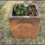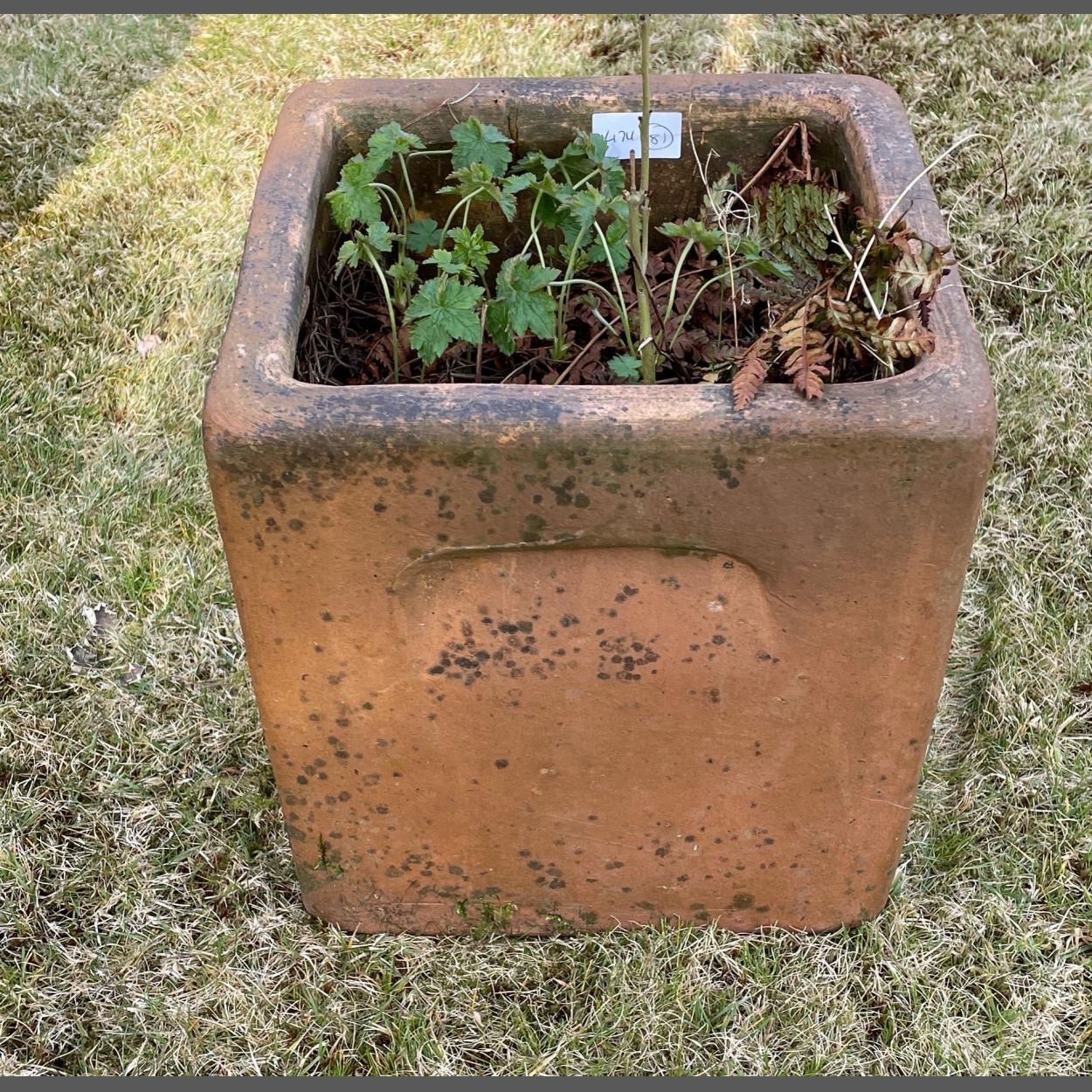 A brick-glazed vintage garden container with square top 27cm x 30cm high