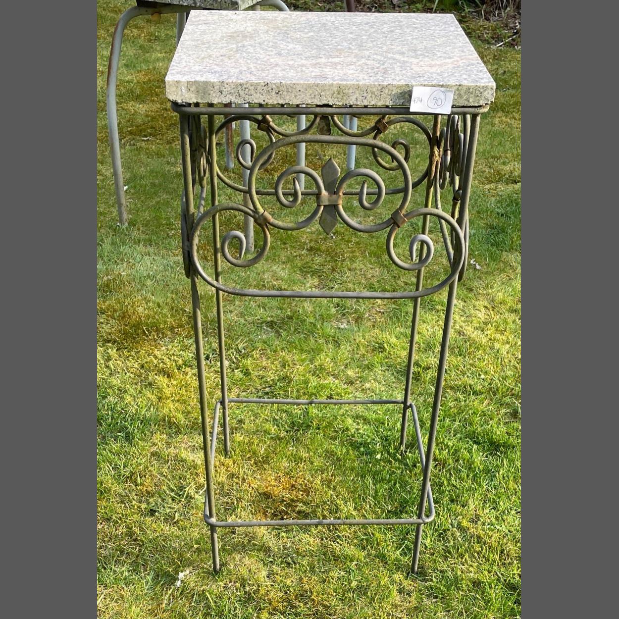 A nice wee wrought iron style low table with marble style top 30cm square x 60cm high