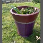 A WHOPPER tallish GARDEN CONTAINER twin- coloured 42cm x 40 cm height( planter has a crack down one side)
