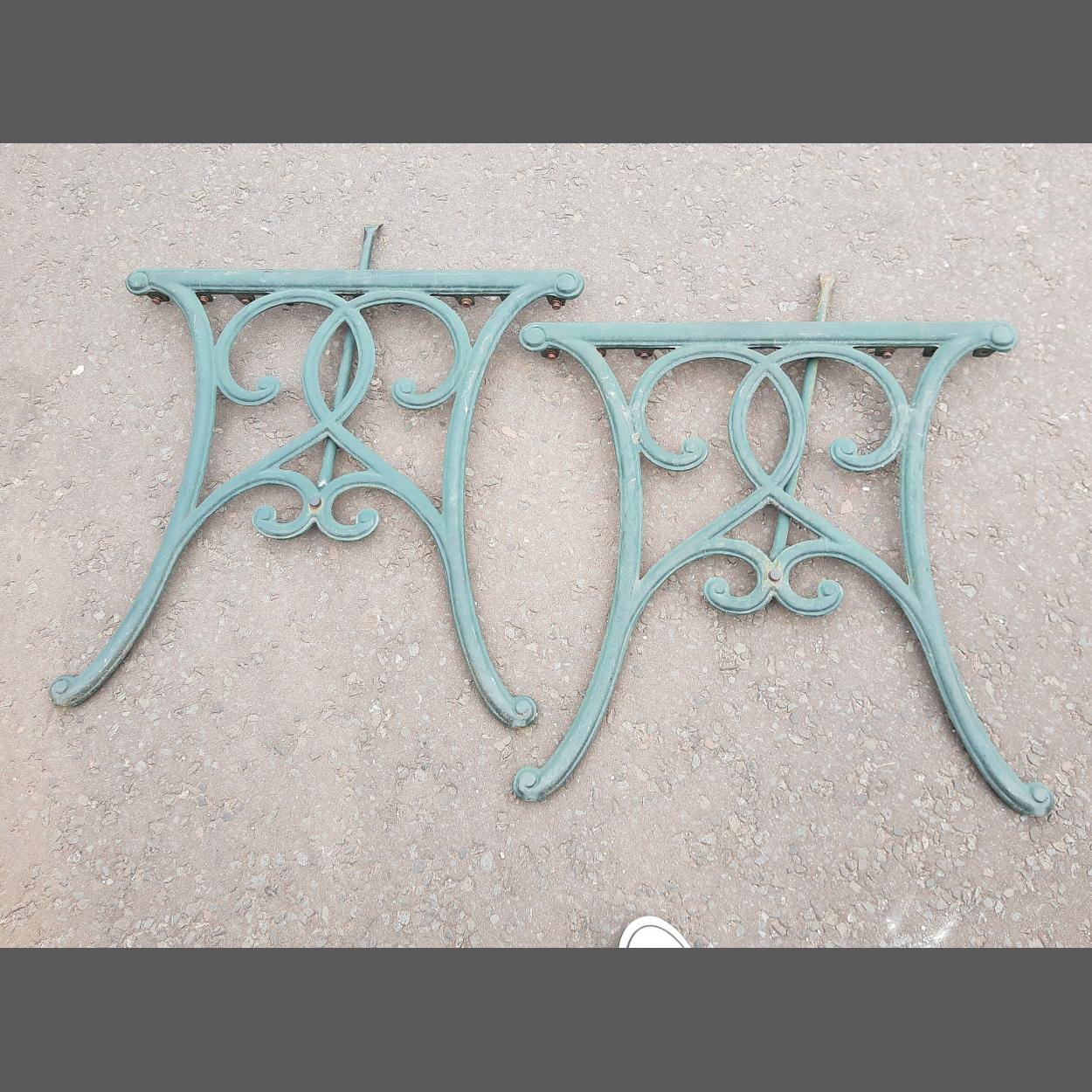 DIY job supreme - a pair of cast iron garden table ends, in excellent condition, just needs the spars to be added, each 85cm high.