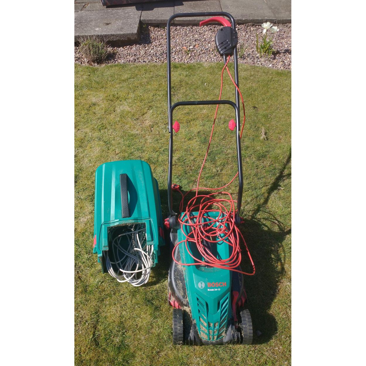 BOSCH Rotak 34-13 electric lawnmower with grassbox and extension cable